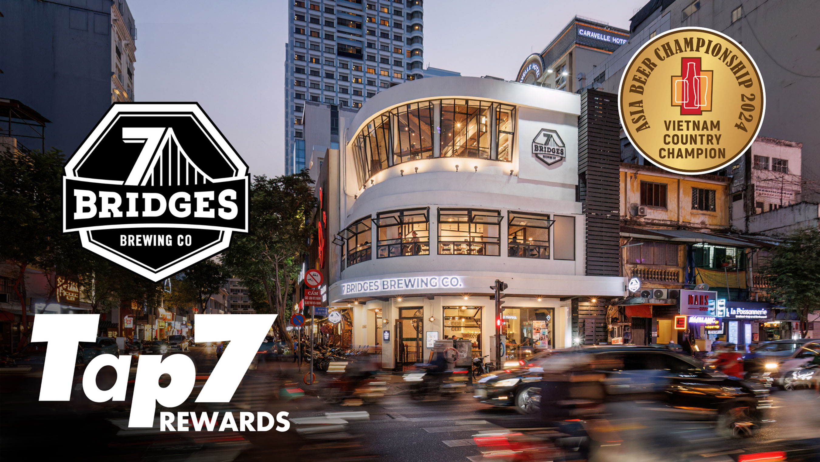 Tại 7 Bridges Brewing Co, chúng tôi tin rằng những cột mốc đáng nhớ nên được chia sẻ cùng những người quan trọng nhất - cộng đồng của chúng tôi. Sau khi vinh dự nhận giải Nhà Vô Địch Bia Của Quốc Gia tại Giải Vô Địch Bia Châu Á 2024, chúng tôi muốn gửi lời cảm ơn chân thành đến các bạn - những người đã đồng hành cùng chúng tôi trong suốt thời gian qua. Chính vì vậy, chương trình khách hàng thân thiết TAP7 ra đời, mang đến những ưu đãi đặc biệt dành riêng cho bạn. Hãy cùng TAP7 tạo nên những kỷ niệm khó quên!